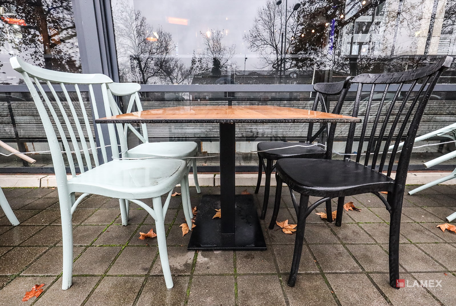 Zbog posebne zaštite površine (PU akrilnom smolom) i tehnologije izrade, ovi stolovi namenjeni su spoljašnjim prostorima.